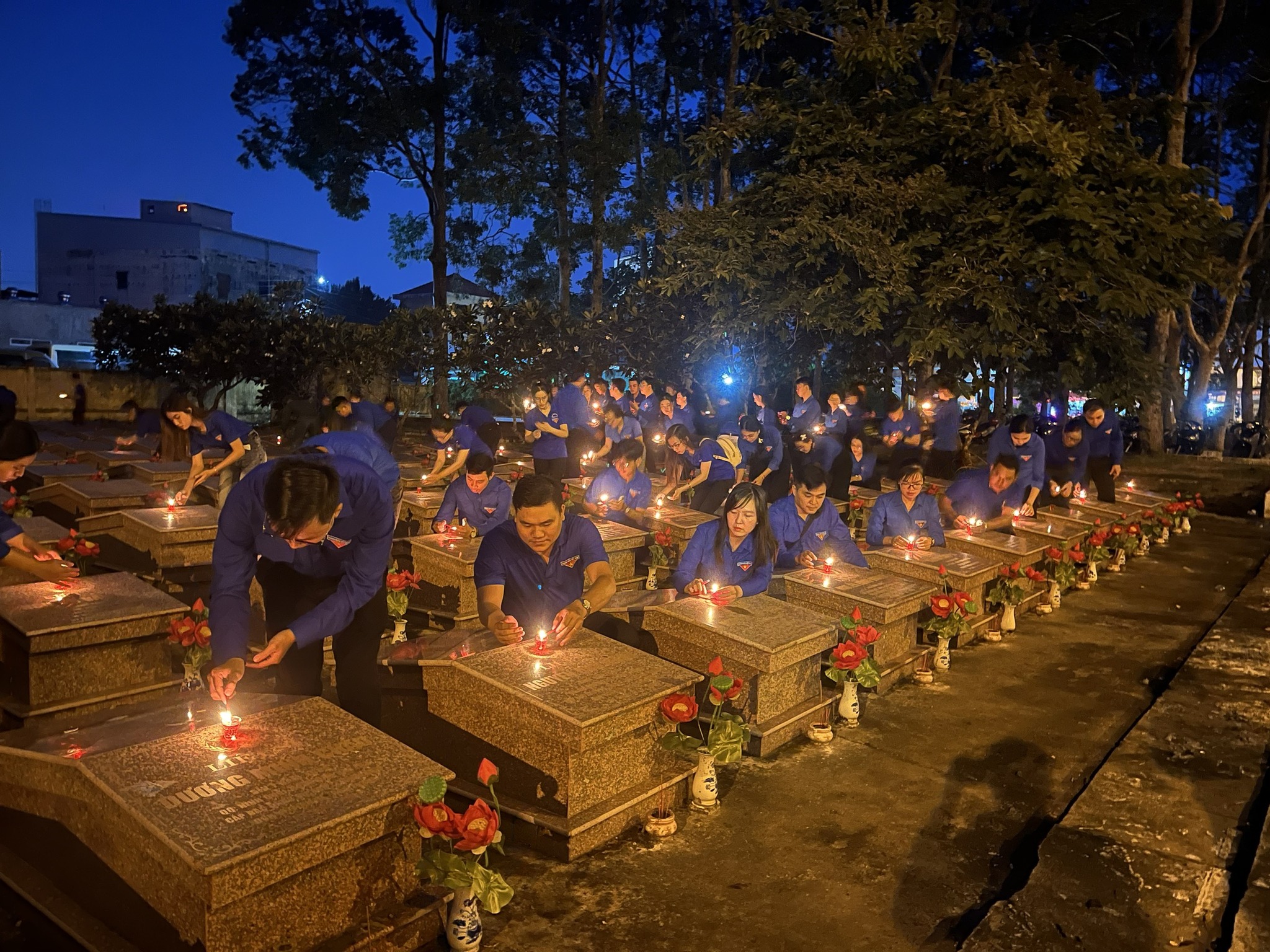 Đoàn viên, thanh niên thắp nến tri ân trên từng phần mộ các anh hùng liệt sĩ