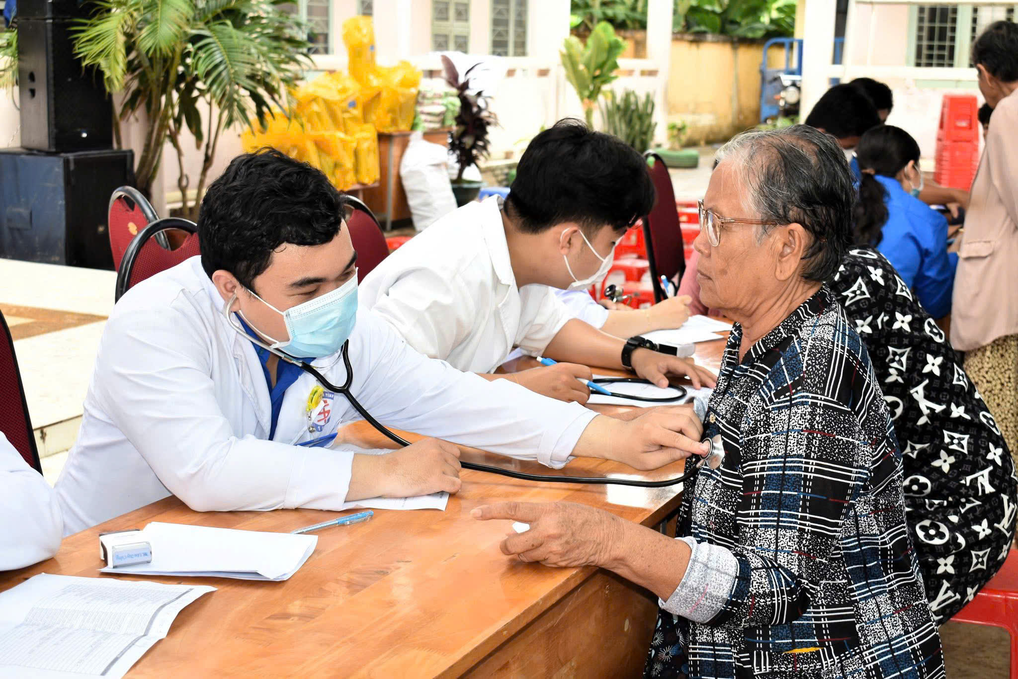 Các y, bác sĩ đã khám bệnh, tư vấn chăm sóc sức khỏe và cấp thuốc miễn phí cho người dân
